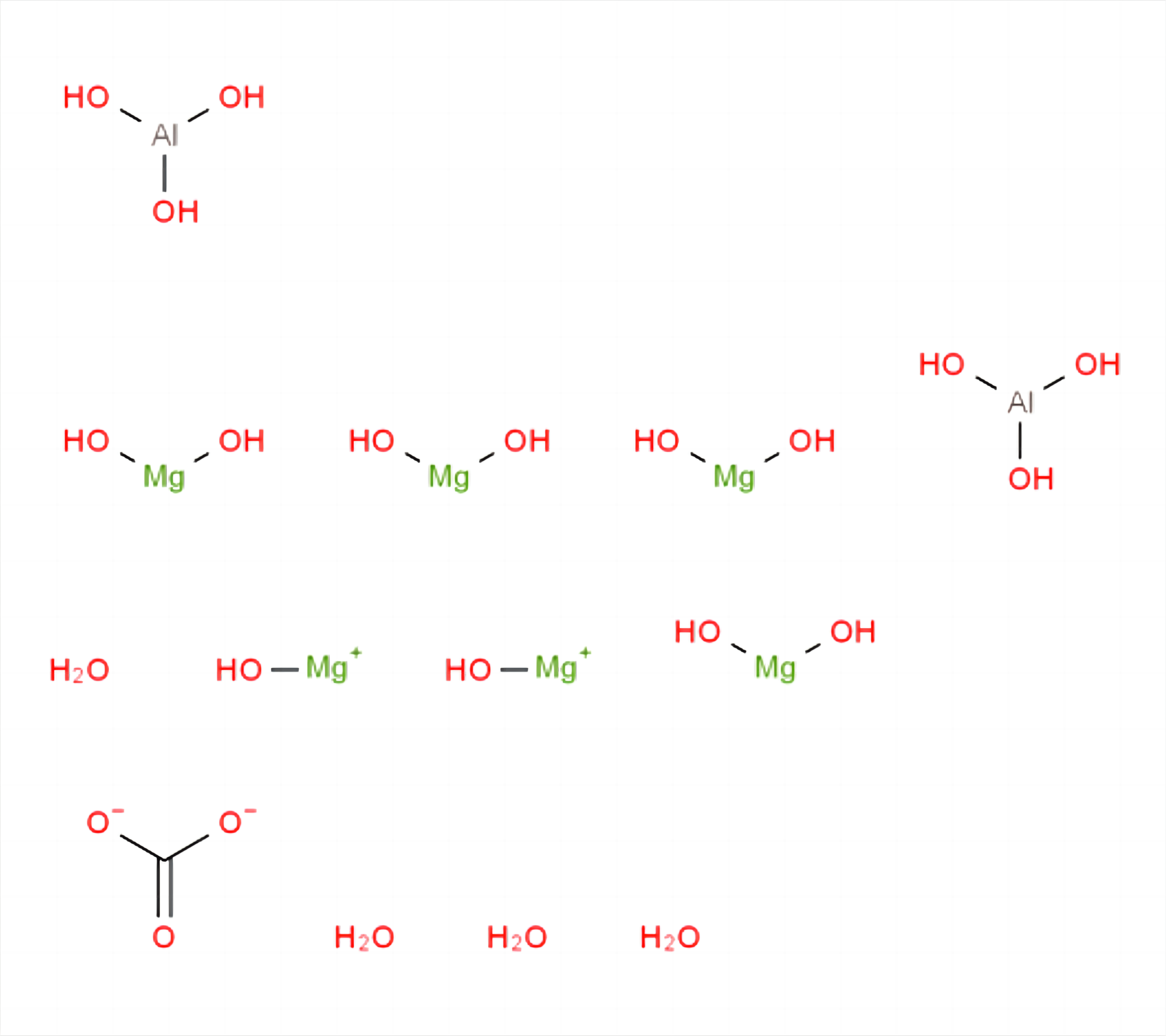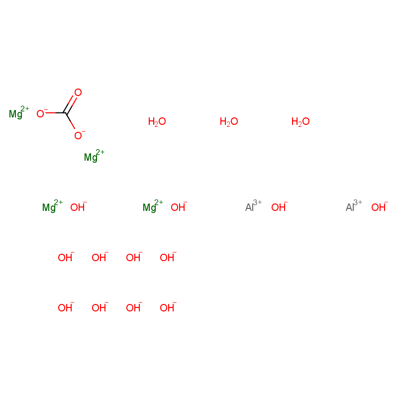 英文名:Hydrotalcite, synthetic                 化学式:Mg4Al2(OH)12CO3.4H2O